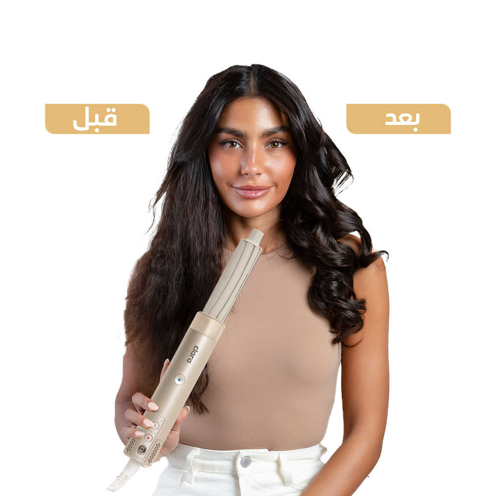 | “جهاز تصفيف لجميع أنواع الشعر، مثالي لعمل تموجات احترافية وتسريحات شعر رائعة! يتميز الجهاز بـ 6 ملحقات تصفيف للحصول على أفضل نتيجة لكل تسريحة مركز الهواء الدقيق مجفف الشعر عدد ٢ أدوات اللف الذاتي (يسار ويمين) فرشاة دائرية: لوصول اسرع للجذور وتصفيف الشعر القصير فرشاة بيضاوية: لتنعيم الشعر واضافة فوليوم” |