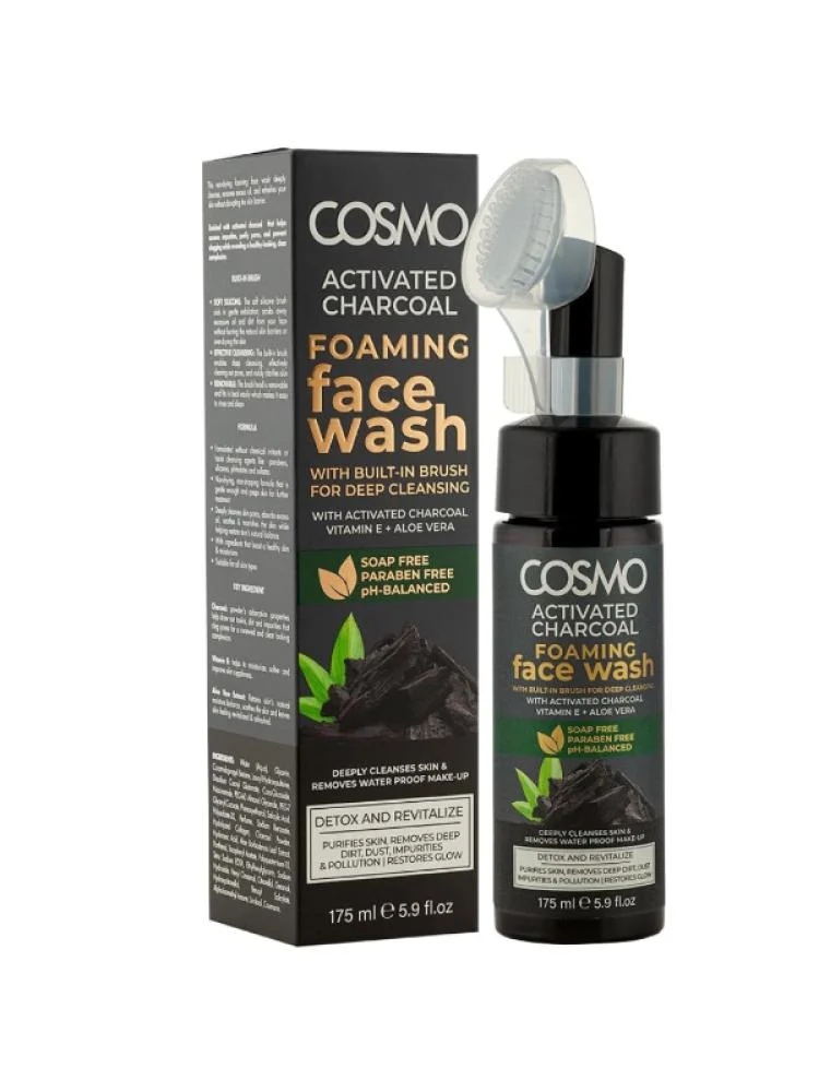 غسول وجه رغوي بالفحم مع فرشاة 175 مل – كوزمو
