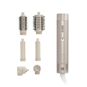 الملحقات: مجموعة من الرؤوس القابلة للتبديل (فوهة تجفيف، فرشاة تمليس، أسطوانات تجعيد).