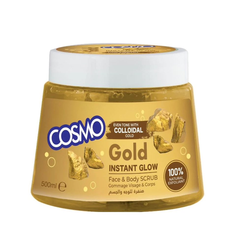 كوزمو صنفرة للوجه والجسم بالذهب 500 مل هي مقشر فاخر يساعد على إزالة الخلايا الميتة وتنظيف البشرة بعمق، مما يمنحها مظهرًا أكثر نعومة وإشراقة. بفضل مكوناته الغنية، تعمل على تحسين ملمس البشرة وتنشيطها لتبدو أكثر حيوية مع الاستخدام المنتظم.