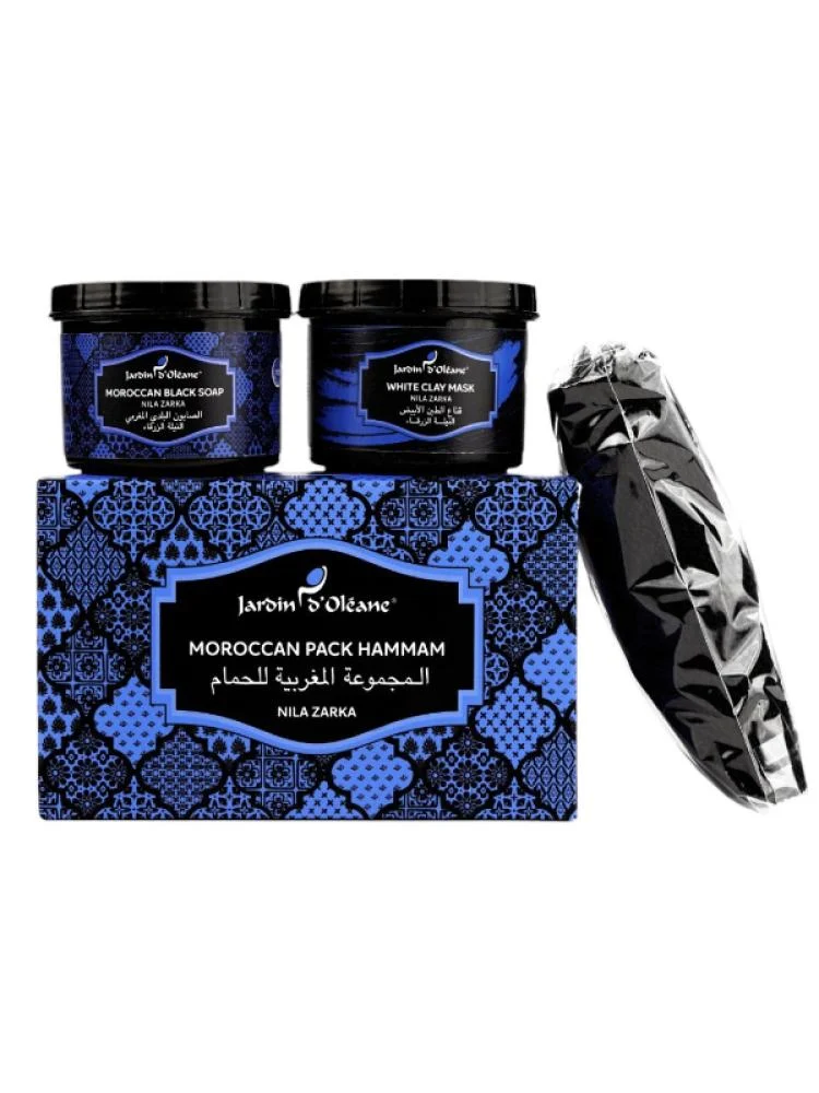تمتعي بتجربة الحمام المغربي الفاخرة في منزلك مع مجموعة جاردن أوليان Jardin Oleane المتكاملة بالنيلة الزرقاء السر المغربي القديم لتفتيح البشرة وتوحيد لونها صممت هذه المجموعة بعناية لتقدم لك روتيناً احترافياً يبدأ بالتنظيف العميق وينتهي بالنعومة الفائقة مما يساعد على إزالة الشوائب وتفتيح التصبغات لتشع بشرتك بياضاً ونضارة من أول استخدام