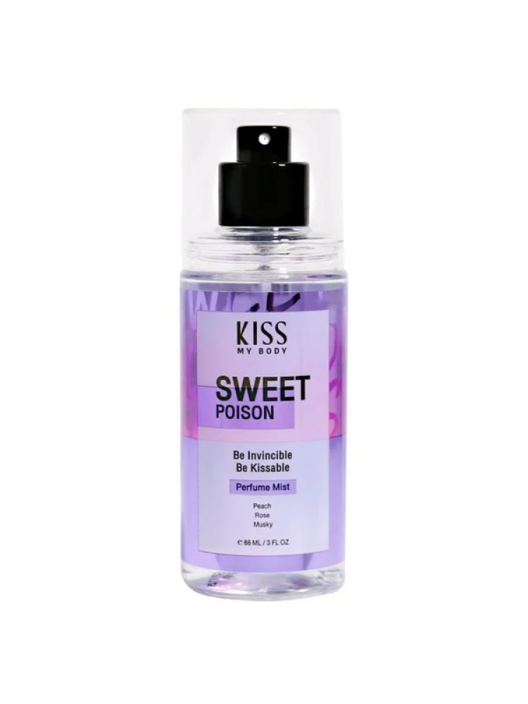 سمٌّ من نوع آخر.. جاذبية قاتلة وأنوثة لا تُقاوم. Kiss My Body عطر الشعر والجسم بميزة Sweet Poison هو المنتج الاحترافي المصمم للمرأة التي تعشق التأثير القوي والغامض. صُمم هذا المعطر بتركيبة “العبير المخملي” التي تمزج بين الحلاوة الساحرة والعمق المثير، ليكون سركِ الخاص لإطلالة تترك أثراً لا يُمحى من الذاكرة.
