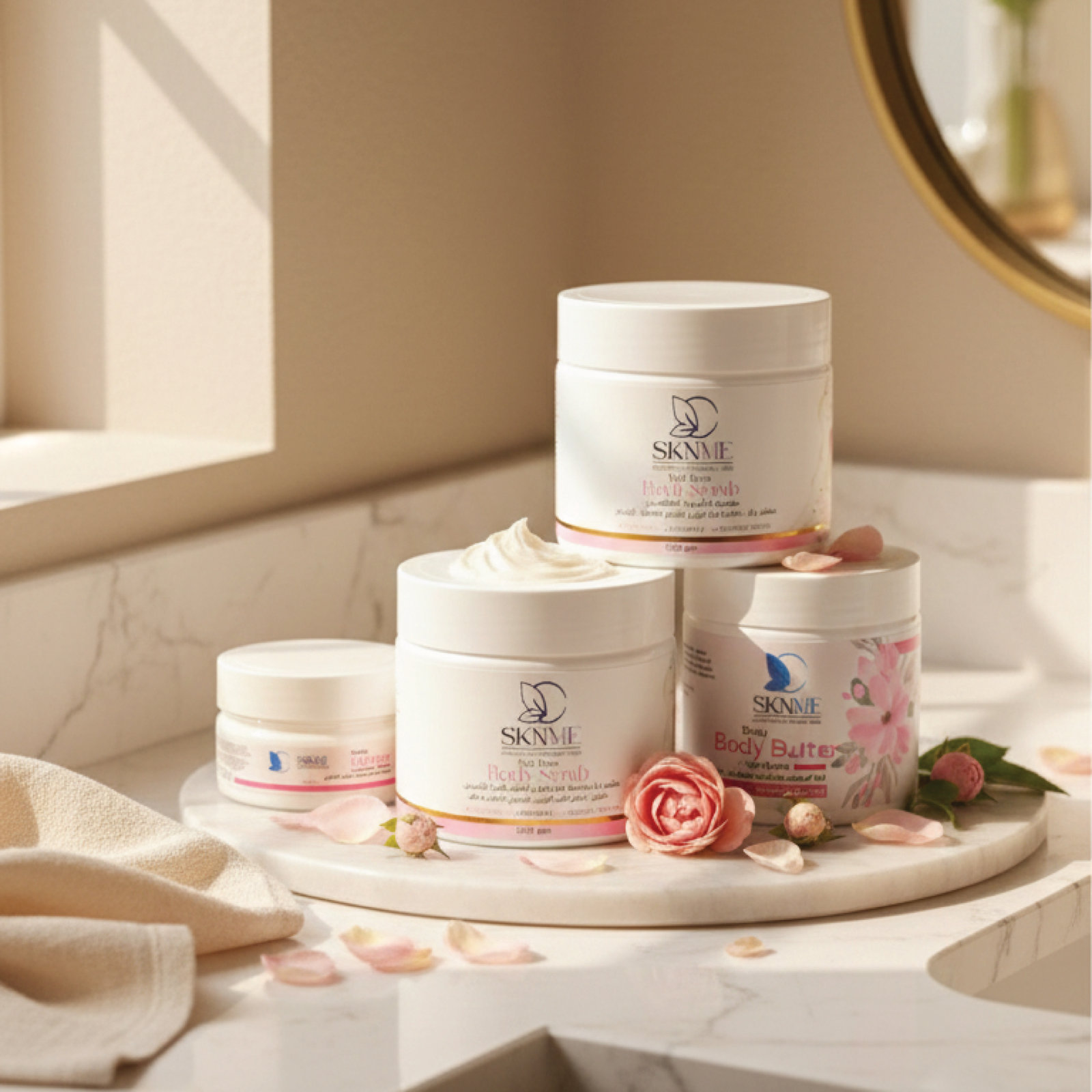 - صُممت هذه المجموعة المتكاملة لتمنحك روتين عناية ملكي في منزلك، حيث تجمع بين التنظيف العميق، التقشير اللطيف، والترطيب المركز بخلاصة الورد الطائفي الطبيعي.