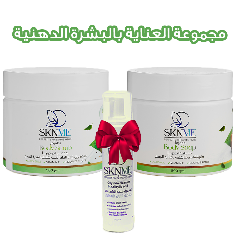 - بكج الجوجوبا من SKNME هو الحل المتكامل والمصمم خصيصاً للعناية بالبشرة الدهنية والمختلطة