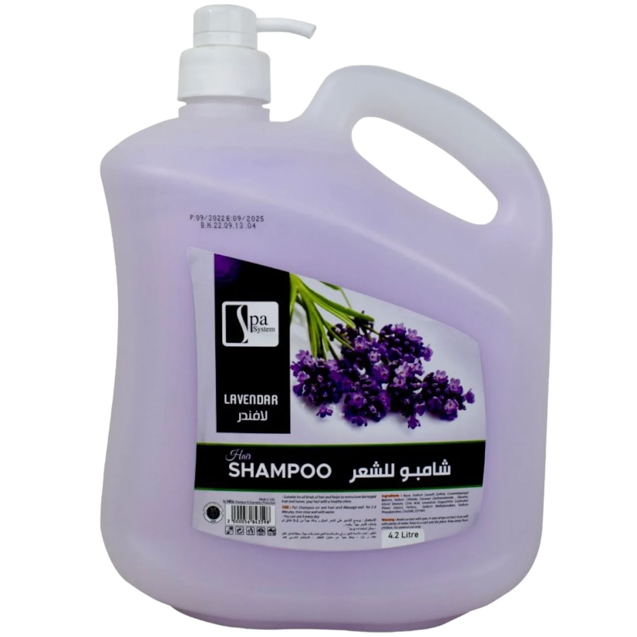 سبا سستم شامبو باللافندر جالون 4.2 لتر هو شامبو اقتصادي للاستخدام اليومي يساعد على تنظيف الشعر بعمق مع الحفاظ على نعومته. بفضل رائحة اللافندر المهدئة، يمنح إحساسًا بالاسترخاء والانتعاش، كما يساعد على تحسين مظهر الشعر وجعله أكثر صحة ولمعانًا.